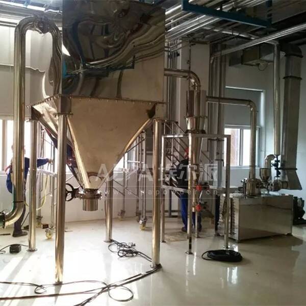 物料由加料系統(tǒng)均勻的送入粉碎室,受到高速旋轉(zhuǎn)的粉碎盤的強烈沖擊,同時受到離心力的作用,與粉碎齒圈發(fā)生碰撞,受到剪切、摩擦、碰撞等多種綜合力的作用,使物料粉碎,被粉碎的物料隨氣流運動到分級區(qū),通過變頻調(diào)節(jié)的分級輪,對粗細(xì)物料進(jìn)行分離,符合細(xì)度要求的產(chǎn)品隨氣流進(jìn)入旋風(fēng)收集器和除塵器收集,粗細(xì)料返回分級區(qū)二級粉碎。